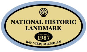By the late 1880’s, the Bay View Assembly became a pioneering institution in public education with an ambitious summer university, a home study program enrolling men and women across the nation, and a Chautauqua series attracting tens of thousands of visitors. During the same period, Bay View developed into a community featuring Victorian cottages replacing the early “tent city”. In 1987 the National Park Service designated Bay View as a National Historic Landmark because it is… “one of the finest remaining examples of two uniquely American community forms, the Methodist camp meeting and the independent Chautauqua. Designed for the first purpose in 1876 as the country’s only romantically planned campground, and adapted for the second from 1885 to 1915, Bay View constitutes an extraordinarily well executed ideal Victorian community which, because of its continuing corporate existence and the ongoing collective values of its membership, remains in an excellent state of preservation of both form and spirit. Bay View is a major example of American religious, cultural, social, and educational ideals embodied in an artistically shaped community plan.”